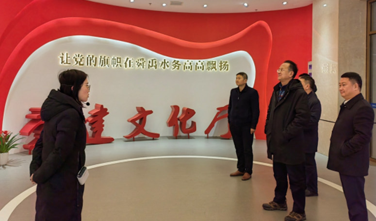 在安徽舜禹水務(wù)黨支部書記、董事長鄧幫武的陪同下,一行人首先參觀了舜禹黨建文化廳。進入舜禹黨建中心文化廳第一眼,映入眼簾的是入黨誓詞,在工作人員的帶領(lǐng)下,全體黨員重溫了入黨誓詞,再次回顧了中國共產(chǎn)黨的光輝歷程和非公黨建發(fā)展階段。全體黨員紛紛表示被舜禹以 “初心、匠心、用心、愛心”為核心的“四心黨建”模式深深觸動。